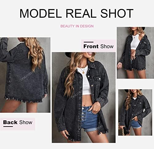 Dokotoo Women’s Oversized Denim Jacket Casual Long Boyfriend Distresse Jean Jacket Autumn Spring