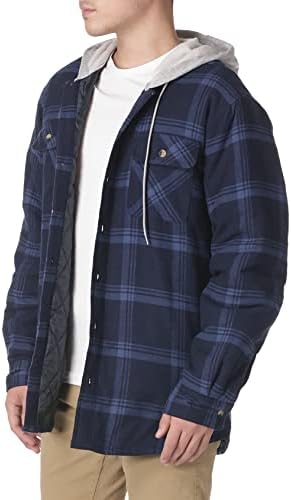 Wrangler Authentics Men’s Long Sleeve Quilted Lined Flannel Shirt Jacket with Hood